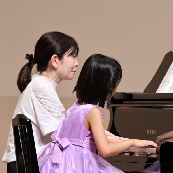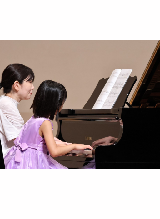ピアノレッスンの中で、伸びしろであるソルフェージュを取り入れています。大きい舞台での発表会では、成長を実感できます。